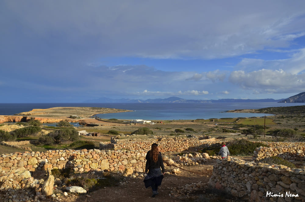 Ξεκινώντας από το χωριό ακολουθούμε τον παραλιακό δρόμο προς τα ανατολικά. Θα περάσουμε μέσα από τη συνοικία Στρούμπος, από την παραλία Χοντρός Κάβος, τις παραλίες Χαροκόπου, Φανός, Πλατιά Πούντα, θα κάνουμε μία βουτιά αν το θελήσουμε και θα συνεχίσουμε. Θα δούμε την Πισίνα, την σπηλιά ‘Το Μάτι του Διαβόλου’ και θα φθάσουμε στην παραλία Πορί.