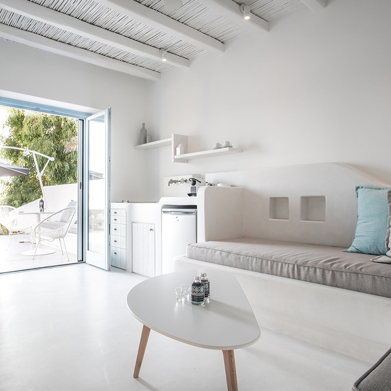 Το ελληνικό φως, αναδεικνύει το κυκλαδίτικο λευκό, το απαλό γαλάζιο και το ήσυχο γκρι, εκπέμποντας μια ατμόσφαιρα καθαρότητας, ηρεμίας και αρμονίας. Ατμόσφαιρα που προσφέρει απολαυστικές διακοπές το καλοκαίρι, σε όσους προτιμούν το εκλεκτικά απλό και το διαχρονικά κομψό.